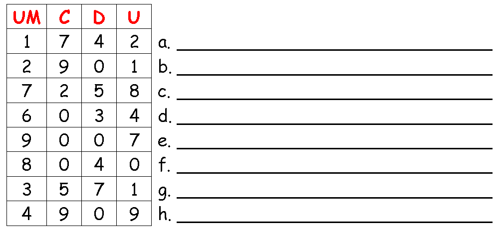 comenzamos con las unidades de mil, seguimos con las centenas, luego con las